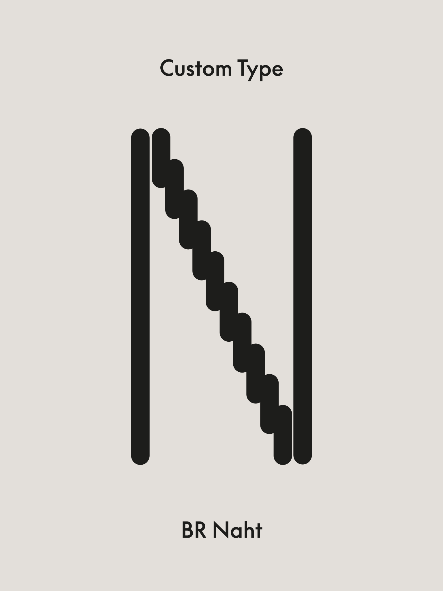 Die Naht wird gleichzeitig starkes Designelement des neuen Auftritts und im besonderen der neuen Display-Type BR Naht. Das Grundelement (die Naht) bleibt immer das selbe, Anordnung, Neigung, Dichte und Linienführung sind aber variabel und können je nach Wunsch neu gestaltet werden. Ein flexible Schrift die, wie die Produkte nicht aus der Zeit fallen, sondern mit der Zeit gehen.